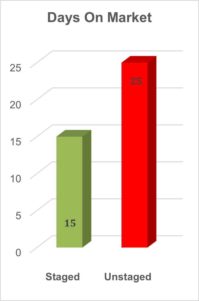 • Staged homes sell in 15 days compared to 25 days for an unstaged home.